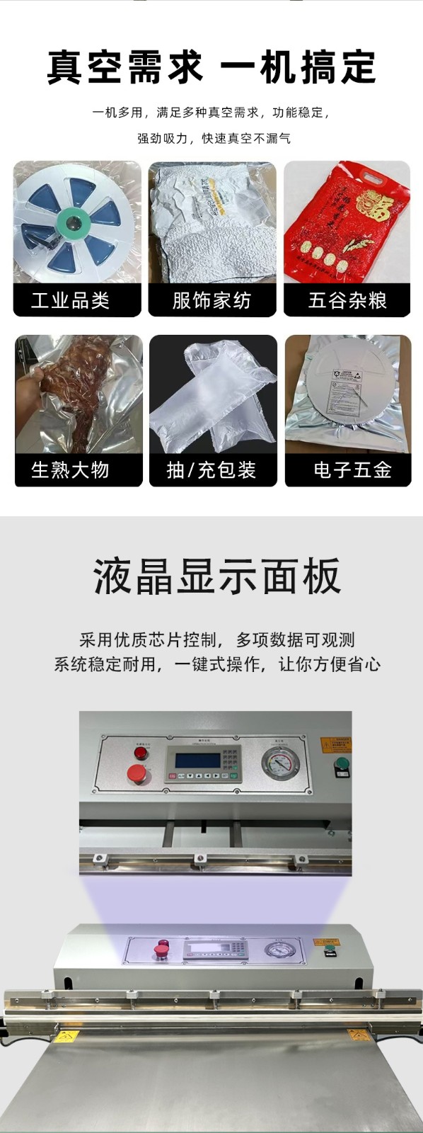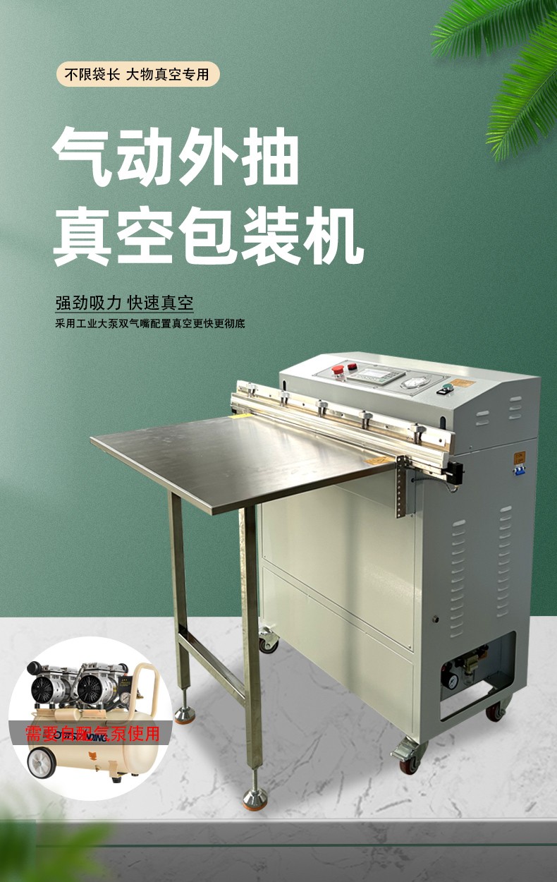 - 像芯片、電容、電阻等微小的電子元器件,對環(huán)境要求很高。空氣中的水分、灰塵和氧氣等可能會對其造成損害,如氧化、短路等。氣動外抽真空包裝機可以為這些元器件創(chuàng)造一個干燥、無氧的環(huán)境,確保它們在儲存和運輸過程中的性能不受影響。