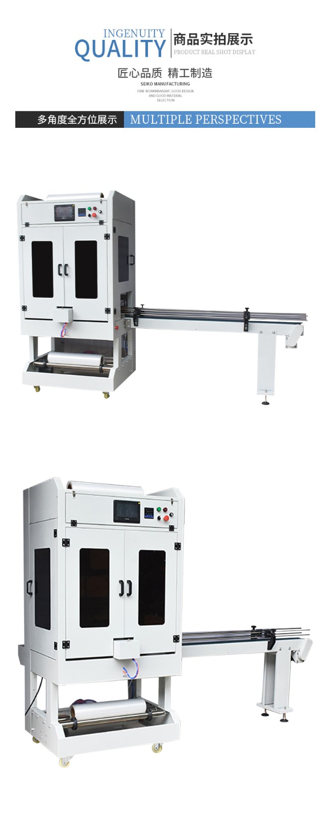 - 定位精準:在套膜過程中,產(chǎn)品的定位準確。無論是通過光電傳感器還是機械定位裝置,都能確保產(chǎn)品在輸送帶上準確地進入套膜區(qū)域,使薄膜能夠準確地圍繞產(chǎn)品進行包裹,減少了因定位不準而導致的套膜失誤。