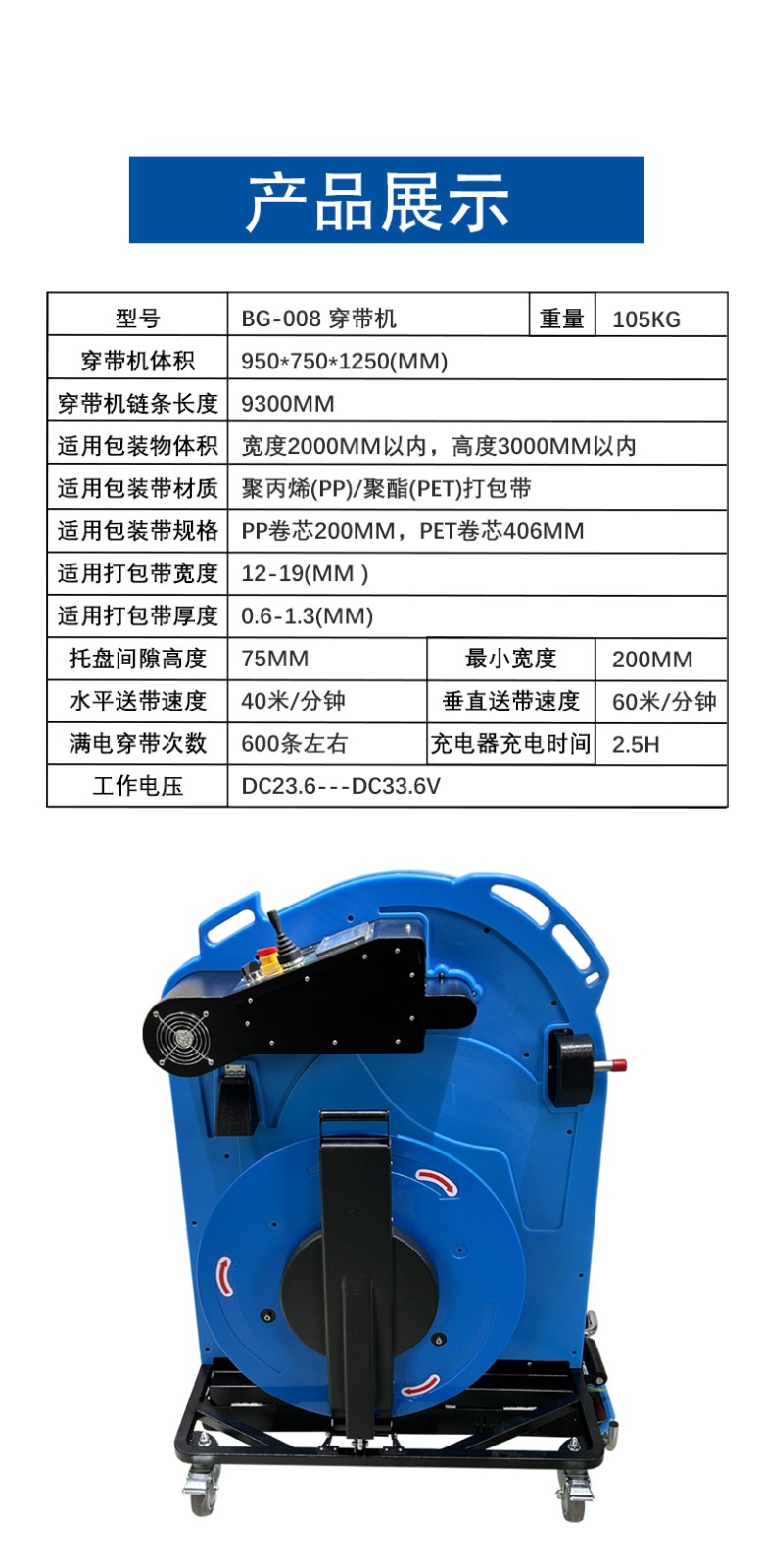- 穿帶機(jī)是一種在包裝流程中起輔助作用的設(shè)備,主要用于將打包帶穿過被包裝物品周圍或包裝結(jié)構(gòu)中的特定位置,以便后續(xù)進(jìn)行打包操作。它可以被看作是包裝自動化生產(chǎn)線中的一個(gè)環(huán)節(jié),能夠有效提高打包的效率和準(zhǔn)確性。