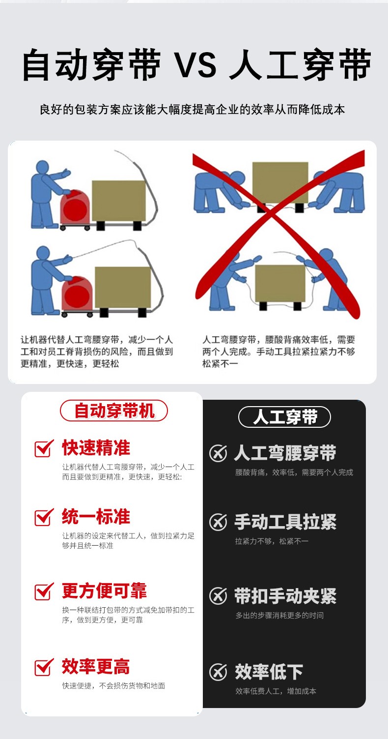 - 降低勞動強(qiáng)度:人工穿帶尤其是對于大型或批量的包裝任務(wù),勞動強(qiáng)度較大。穿帶機(jī)的使用可以將操作人員從繁瑣的穿帶工作中解放出來,讓他們可以專注于其他包裝環(huán)節(jié)或設(shè)備的監(jiān)控。